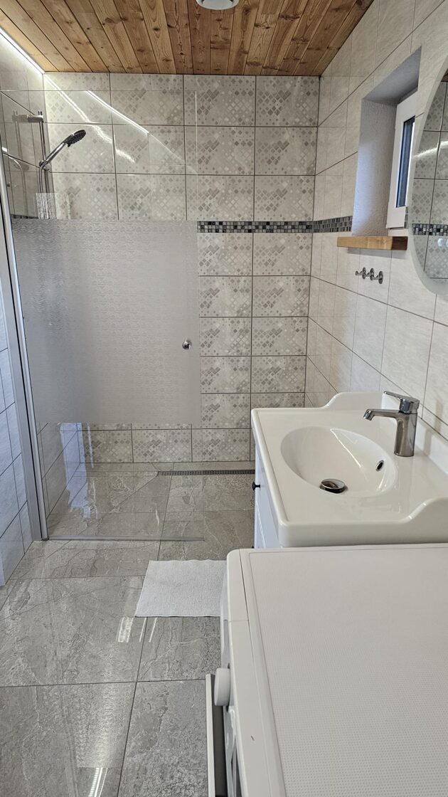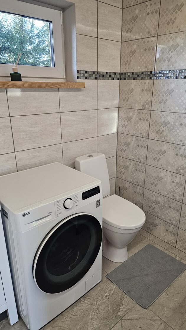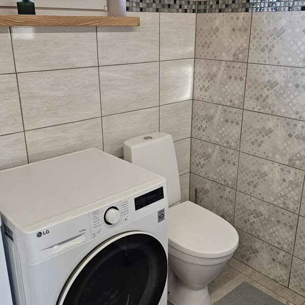 WC un dušas telpa ir namiņa pirmajā stāvā. Ir veļas mazgājamā mašīna.