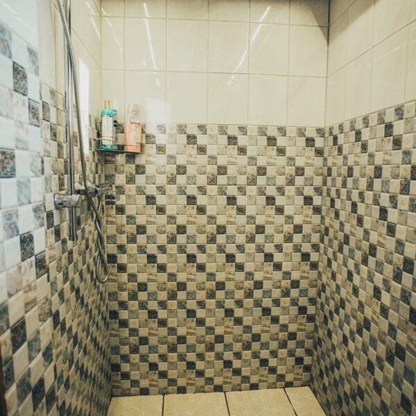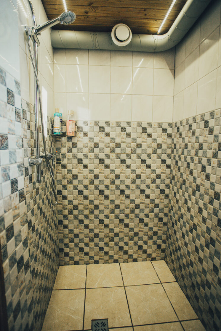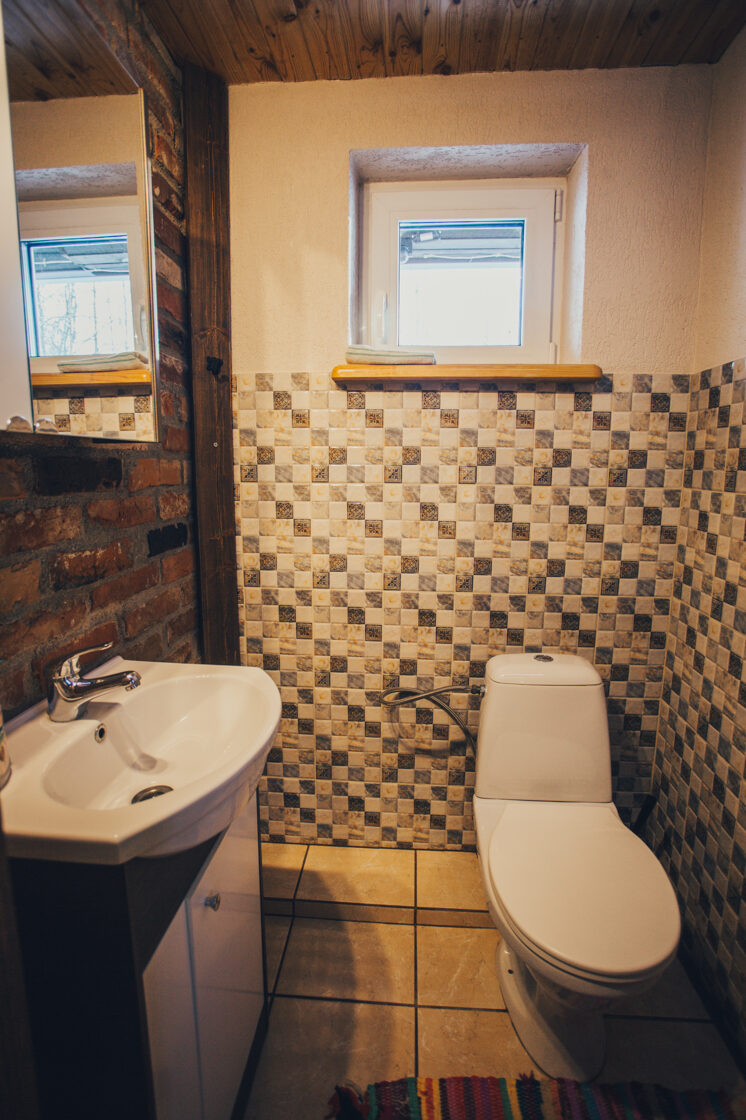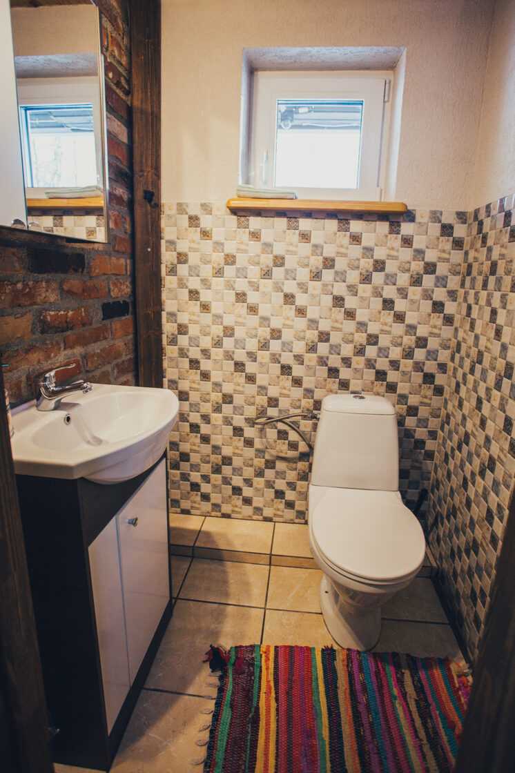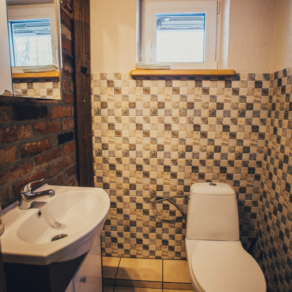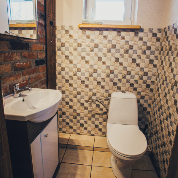 WC un dušas telpa ir namiņa pirmajā stāvā.